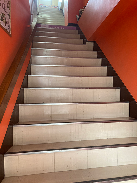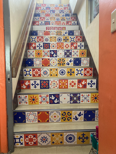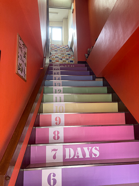 階段の蹴込み(たて面)に、シートによる装飾を施しました。階段装飾を行うことで雰囲気を変えることができ、また装飾としてはもちろん営業時間や広告として活用もしていただけるかと思います。