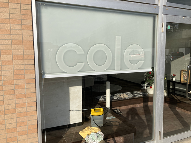 店舗の顔となる入口のガラス部分に店名やイメージの装飾を施工しました。